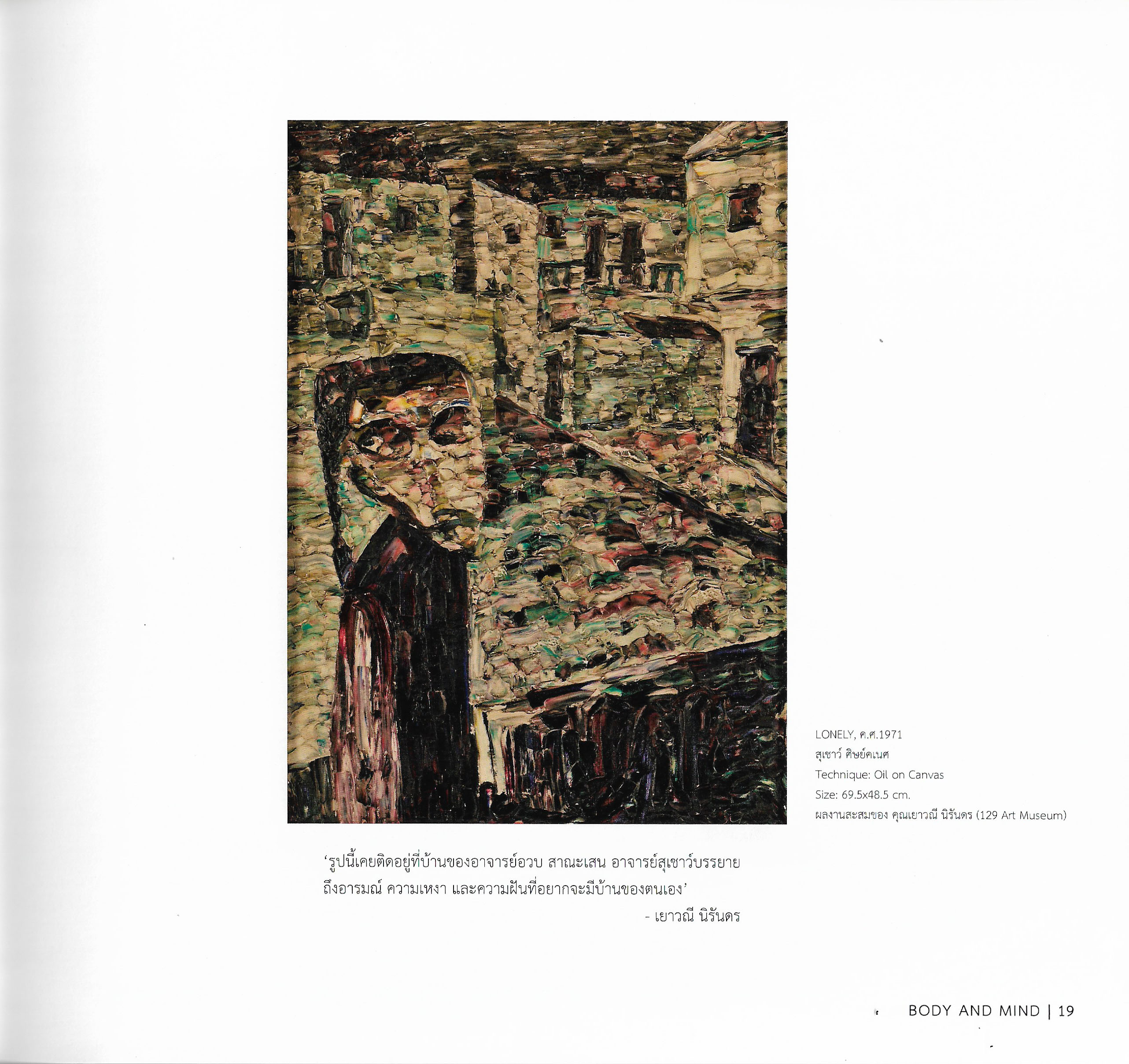 Portrait, a very popular genre, has become a tool for many artists. Tawan Wattuya and Mue Bon use it to reflect on social and political issues. Work can also help preserve the memory and capture the moment, spiritually, good or bad, as seen in Haritorn Akarapat’s work. For some, a self-portrait is a way to express artists’ in- ner condition or surroundings, as in works by Suchao Sisganes and Vasan Sitthiket.
