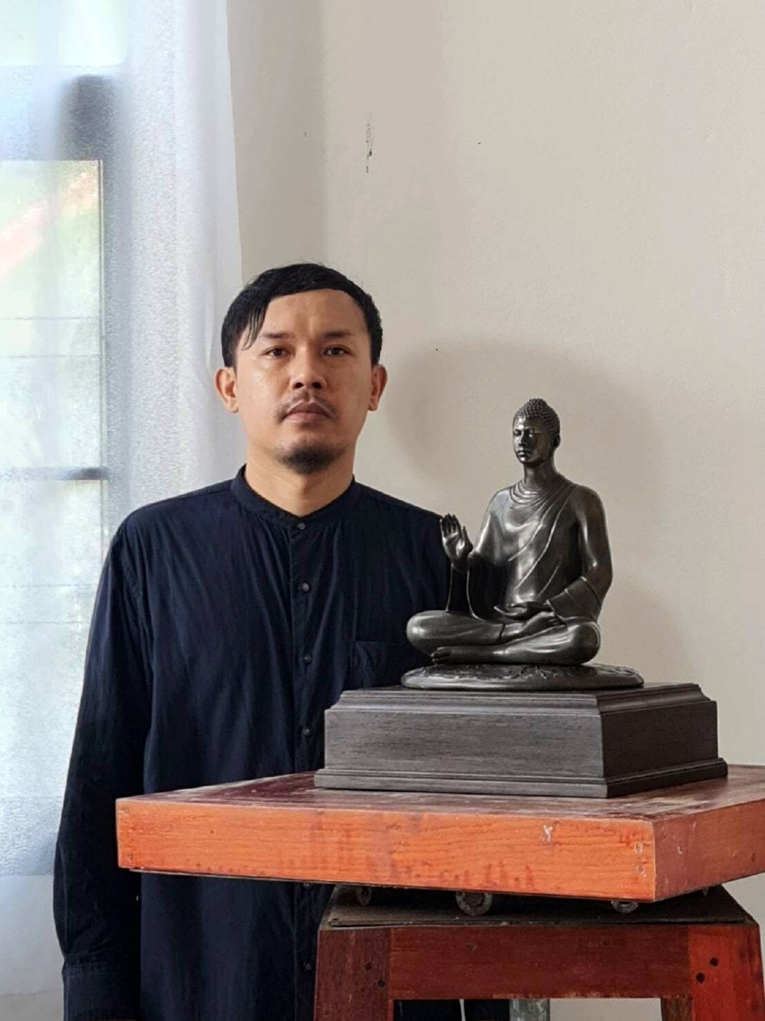 “พุทธปฏิมาองค์นี้สร้างขึ้นจากมโนคติที่ว่า พุทธปฏิมาเปรียบดังมโนภาพของพุทธสภาวะ ที่เกิดจาก การรู้แจ้งในญาณทัสสนะและบรรลุสัมมาสัมโพธิญาณของพระโคตมพุทธเจ้า ที่ค้นพบความจริงและวิถีปฏิบัติ ที่นำมนุษย์ไปสู่ความหลุดพ้นด้วยพระองค์เอง ในความหมายของการตื่นรู้ที่เกิดขึ้นจากแสวงหาซึ่งหนทาง ที่จะนำพามนุษย์ชาติไปสู่โลกุตระธรรม ด้วยปณิธานและความเพียรอันบริสุทธิ์ของพระองค์ และด้วยมโนทัศน์ ดังกล่าว ข้าพเจ้าจึงใช้รูปกายวิภาคร่างกายของมนุษย์ตามลักษณะธรรมชาติเป็นพื้นฐาน ในการสร้างที่ เปรียบได้ดังการค่อยๆ ขัดเกลาพุทธปฏิมาซึ่งเกิดจากการปรุงแต่งรูปแบบการแสดงออกและรสสุนทรียะ ตามอุดมคติมาหลายทศวรรษ ไปสู่รูปอันแท้จริงจากการตีความของข้าพเจ้า ที่มุ่งหมายเชื่อมโยง ความหมายของความเป็นมนุษย์ในระดับสากล ที่ทุกคนล้วนอยู่ภายใต้เงื่อนไขเดียวกันกับพระพุทธองค์ เพื่อสร้างแรงบันดาลใจและมโนคติที่เชื่อมโยงความดี ความงามไว้กับความจริง และการแสดงออกถึงการมีอยู่ของพุทธสภาวธรรม”
