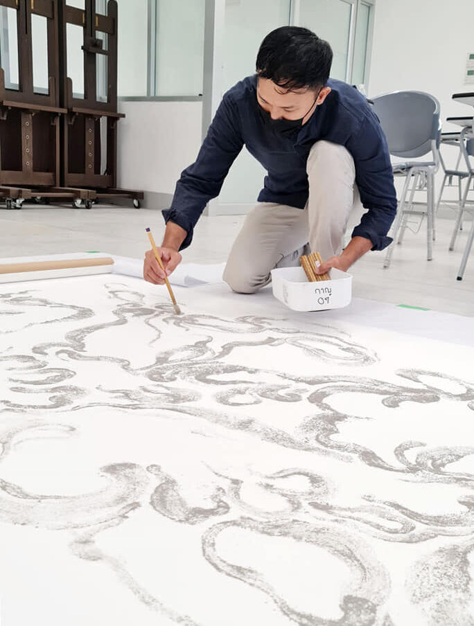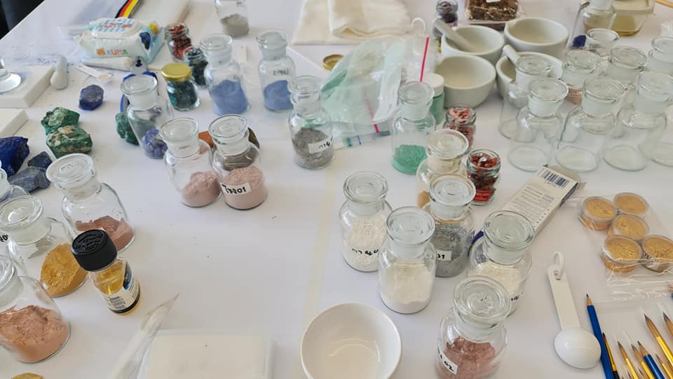 Workshop การเขียนภาพด้วยสีจากธรรมชาติ : ศิลปิน ฉัตรมงคล อินสว่าง เข้าร่วมกิจกรรมการสร้างสรรค์ผลงานจิตรกรรมจากเนื้อสีที่ทำการสกัดจากธรรมชาติ อาทิ หินแร่ชนิดต่างๆ จากแต่ละภูมิภาคของไทย ณ คณะจิตรกรรม ประติมากรรมและภาพพิมพ์ มหาวิทยาลัยศิลปากร วังท่าพระ
